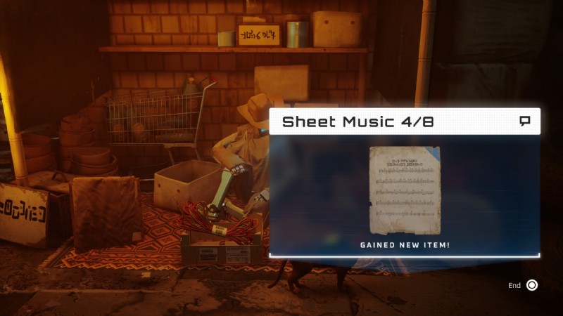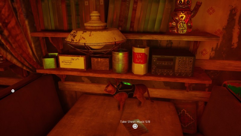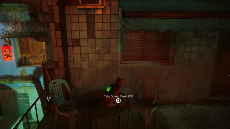 スラムの頂上にあるモモのアパートに向かう必要があるため、これが実際に収集する最後のものです.いつでもここに行くことができますが、これはメインのクエストラインの一部であるため、最後に取得することをお勧めします.モモのアパートに入ったら、左側のドアの下部にあるスロットを通り、棚に飛び乗って最初の楽譜を手に取ります。