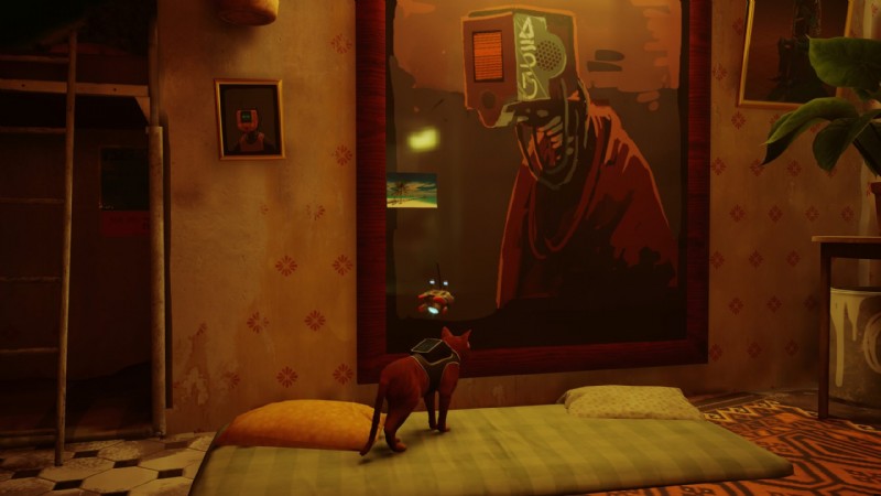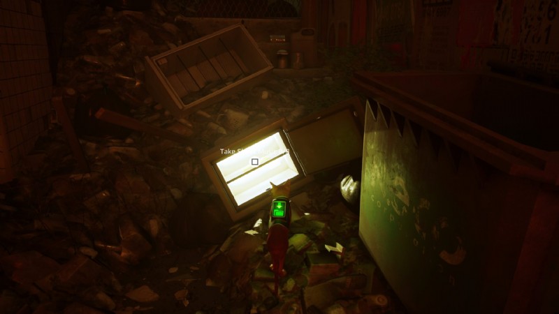 2体のロボットがペンキ缶を投げているエリアに向かいます。左を見ると、放棄された屋根の上にソファとテレビがあります。そこから入ることができる別のエリアが表示され、そこから図書館に移動します(後でノートを取りにここに来る必要があるため、まだ見つからない場合はここに案内されます)後で)
