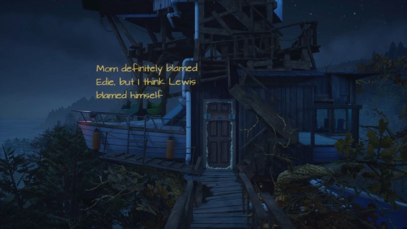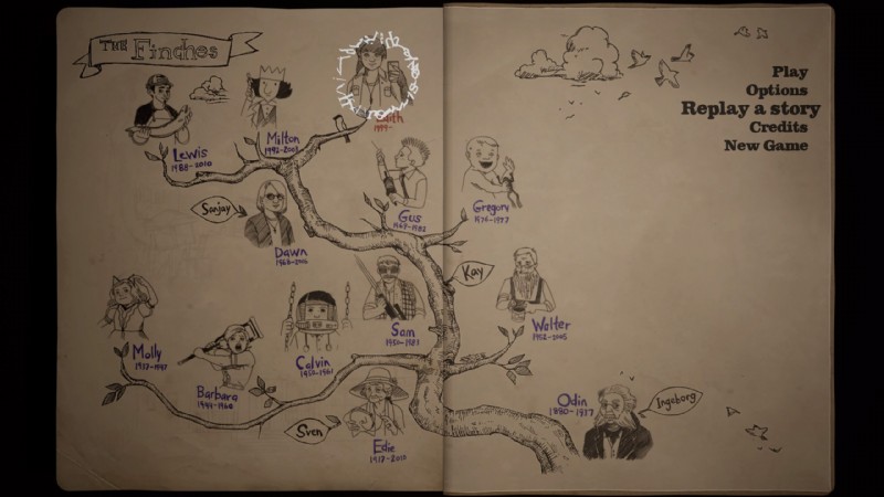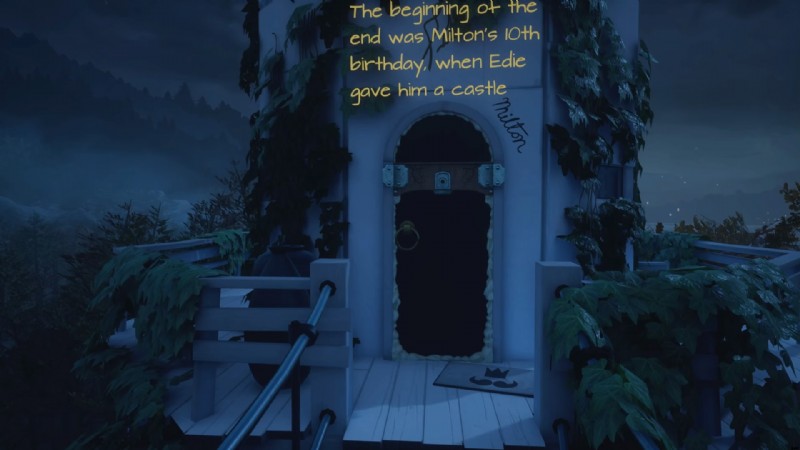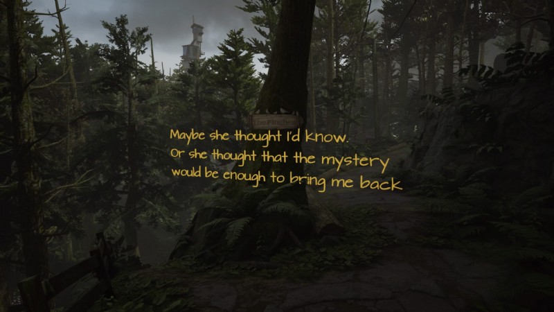 ゲームの開始時に、森の中を小道をたどってフィンチ邸に向かいます。この道は道の分岐点につながり、右または左の道を選択できます。好きな道を決めて、それに従っていけば家にたどり着きますが、まだ家に入らないように注意してください。振り返って、最初に通った道をたどって、道路の分岐点に戻ります。フィンチ家への秘境を歩くとアチーブメントが出現し、ストーリーを進めることができます。