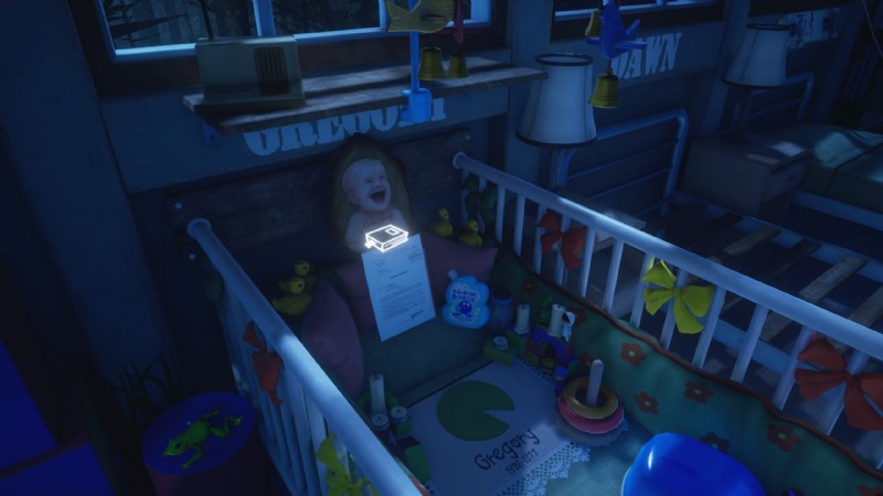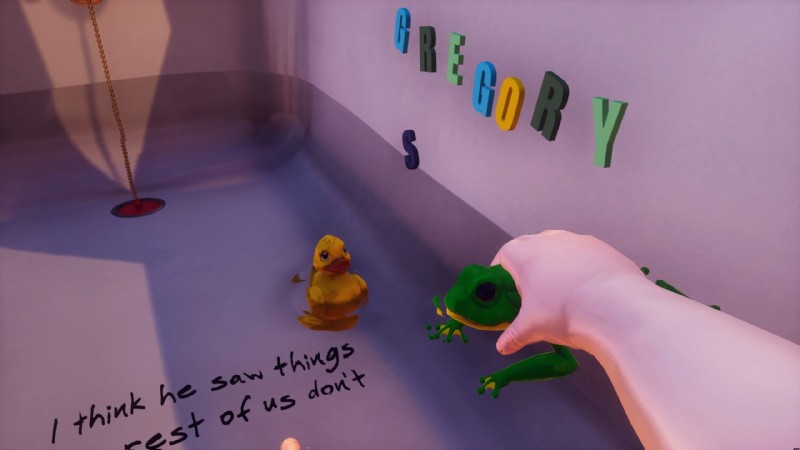 赤ちゃんグレゴリーとのシークエンスでは、浴槽でジャンプするカエルのおもちゃを操作します。右側に「GREGORY」の文字があります。 PlayStation 5 の R1/R2 ボタンまたは Xbox Series X|S の右バンパー/右トリガーを使用して、カエルを文字にジャンプさせて倒せば、実績を獲得できます。