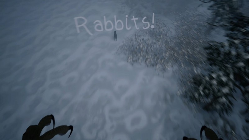 モリーの物語では、さまざまな動物としてプレイする機会があります。フクロウとしてプレイするセクションでは、たった 2 回の急襲で 2 匹のウサギを捕まえなければなりません。重要なのは、ゲームのテキストに従うことです。まず、「うさぎ」の文字が見えたら、雪の中のうさぎに合わせて、その方向に急降下すると、簡単に捕まえることができます。すると、「おかあさんうさぎ!」の文字が。もう一度一般的な方向に合わせて急降下すると、成果はあなたのものになります。