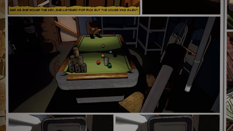 バーバラの話、漫画のホラー ストーリーでは、階段を降りて地下室に行き、ボーイフレンドのリックの松葉杖を手に取り、武器として使用します。武器を入手した最初の部屋には、缶、ボール、木の板が積み上げられたビリヤード台が見えます。できることはすべてビリヤード台のポケットに入れるか、テーブルから完全に外すことが重要です。テーブルの後ろに積み上げられた木の板を忘れないでください。テーブルからすべてのボールと破片が完全に取り除かれると、実績が表示されます。