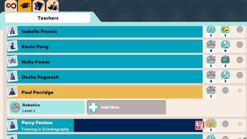 これは最初は残念に聞こえるかもしれませんが、Two Point Campus には Hospital と同じ昇進システムがありません。代わりに、比較的短い時間枠で同じスタッフ メンバーを複数回トレーニングできます。さらに、低レベルから中レベルのアップグレードには 1,000 ドルから 10,000 ドルかかるため、スタッフのトレーニングははるかに安価です。