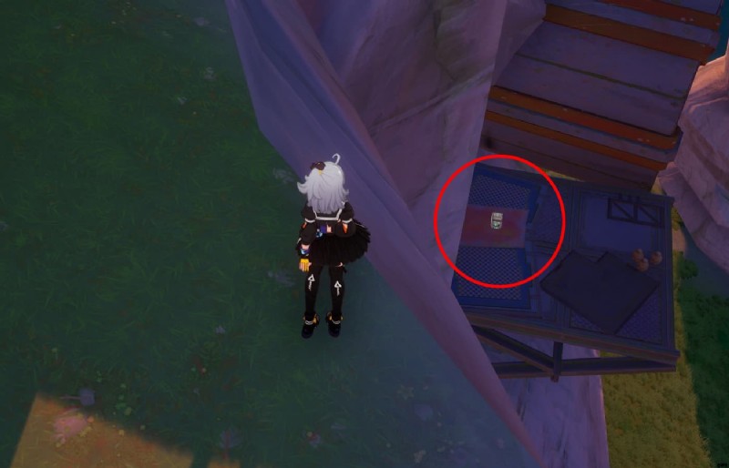 - エネルギー スクリーン バンカーの後ろに向かい、青い球体の建物を通り過ぎます。少し東に向かい、断崖絶壁に近づきます。ボットのあるプラットフォームが見つかるまで下を向いてください。