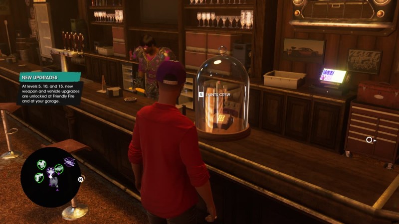 教会に向かい、入り口の右側にある大きなバーに行きます。バートップに小さなガラスのドームが見えます。そこに近づいたら、「Saints Crew」というプロンプトをクリックしてメニューに移動します。
