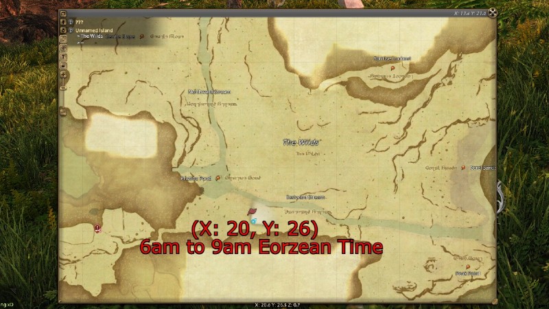 キツネザルはまれなスポーンであるため、エオルゼア時間の午前 6 時から午前 9 時の間にしかスポーンできません。 .アイランド サンクチュアリの入り口のすぐ東にある (X:20, Y:26) 座標に移動します 時間枠の間にキツネザルを見つけることができます。幸いなことに、天候はキツネザルが産卵する可能性に影響しません。
