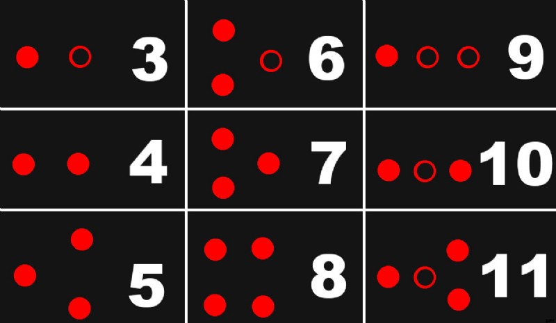 このパズルの目的は、教会にある番号付きの松明と壁にあるシンボルの 2 つの情報を見つけることです。赤く光るシンボルを使用して、火の杖を使用してどの松明を撃つかを把握する必要があります。以下の画像は、各番号のチート シートを示しています。