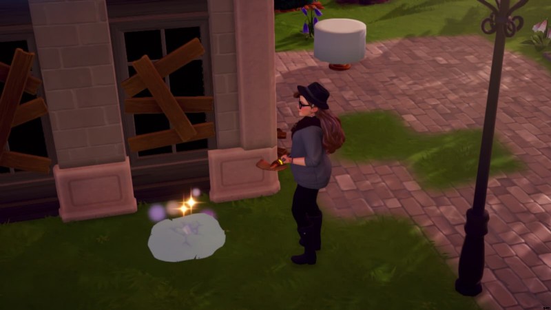 先ほどの記憶を見ると、ミッキーとレミーがシェ・レミーの前に座っていました。近くには、シェ・レミーの壁近くの特定の場所にあるシャベルがあります。このシャベルは、ミッキーの隠れたレシピがどこにあるかを示しています。この場所に向かい、シャベルを使ってその場所を掘ってください!