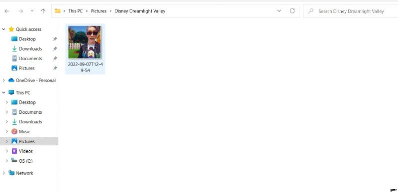 ディズニー ドリームライト バレーの写真モードを使用すると、再撮影ボタンのすぐ下に「デバイスにダウンロード」ボタンがあります。クリックしないと、写真はまったく保存されません。それは単にスクリーンショットに消えます。ただし、ダウンロードすることを選択した場合、ゲームは代わりに奇妙な場所に画像を送信します. Windows の Captures フォルダー、またはゲームのインストール ディレクトリに表示されるだけだと思われるかもしれません。しかし、違います!