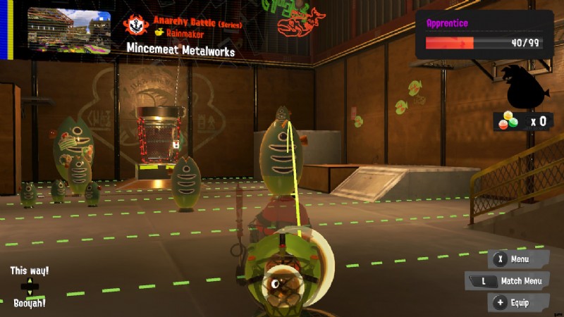 インクが足りない場合は、ZL ボタンを押して独自のインクに浸し、インクを集めます。ゴールデンエッグを投げることで、バッグを確保するかどうかが大きく変わる可能性があるため、それをマスターする方法を学ぶことが重要です.グリズコ内のトレーニングエリアでスローの練習ができます。