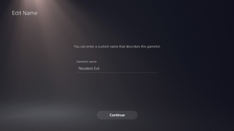 ゲームリストにコンテンツを追加すると、名前を付けるように求められます。この例では、Gamelist で紹介されている Resident Evil コンテンツの「Resident Evil」というタイトルが付けられています。 [続行] をクリックすると、新しいゲームリストが正式に作成されます。