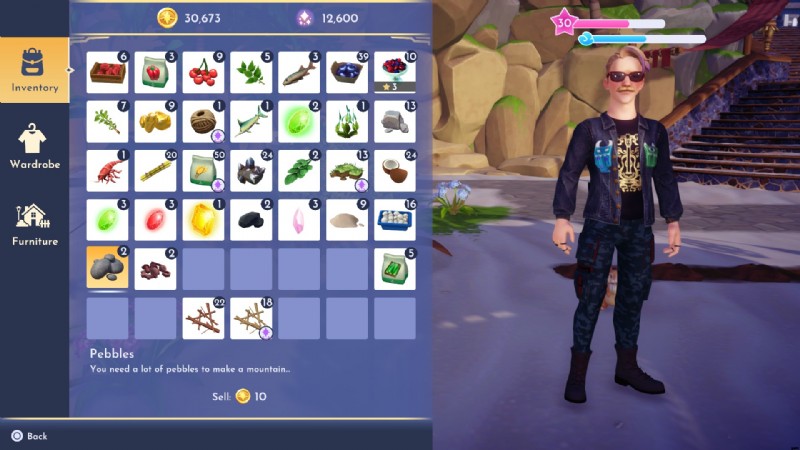 ディズニー ドリームライト バレーは、ライフ シムです。どういう意味ですか?それは、この世界に住んでいる破滅的で実存的な雑用を楽しもうとするゲームであることを意味します.すべてをビデオゲームにすると、それほどひどいものではなくなります。このように、借金を返済することでさえ、壮大な時間になる可能性があります。または、物を作ってお金を稼ぐために、さまざまな種類の木材や鉱物を集めるなど、肉体労働のようなことをします。小石は必要なリソースの 1 つであるだけでなく、おそらく最初に人をつまずかせる可能性があります。