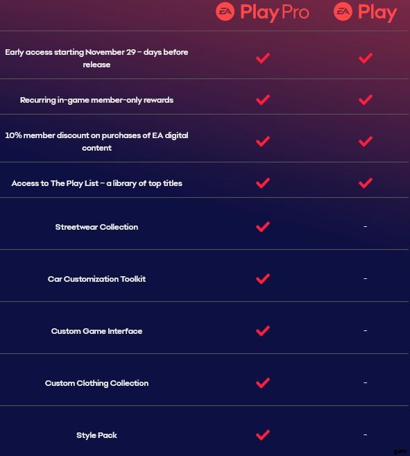 EA Play サービスの加入者は、ゲームをいち早く試すことができます。 11 月 29 日、EA Play サブスクライバーは、10 時間の ニード フォー スピード アンバウンド スタンダード エディション を試すことができます 、EA Play Pro 中 サービス加入者は、Need for Speed Palace Edition をプレイする機会を得ることができます 同日から制限なし。 Need for Speed Unbound に関しては、EA Play Pro と EA Play の間には他にもいくつかの違いがあります。