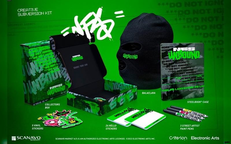ニード・フォー・スピードのタイトルの物理的なコレクターズ・エディションは長い間ありませんでしたが、Unbound ではそれが変わります。 「Creative Subversion Kit」という名前のコレクターズ エディション 、オーバーザトップのアート スタイルを備えた完全なカオスであり、以下が付属しています: