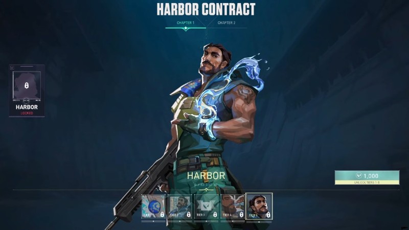 Valorant のほとんどのエージェントと同様に、Harbor は彼の契約でティア 5 に到達することによってロックを解除する必要があります。そのためには、彼の契約を有効にして、Tier 5 に到達するまで XP を獲得するか、グラインドをスキップして 1,000 VP を消費してすぐにアンロックする必要があります。