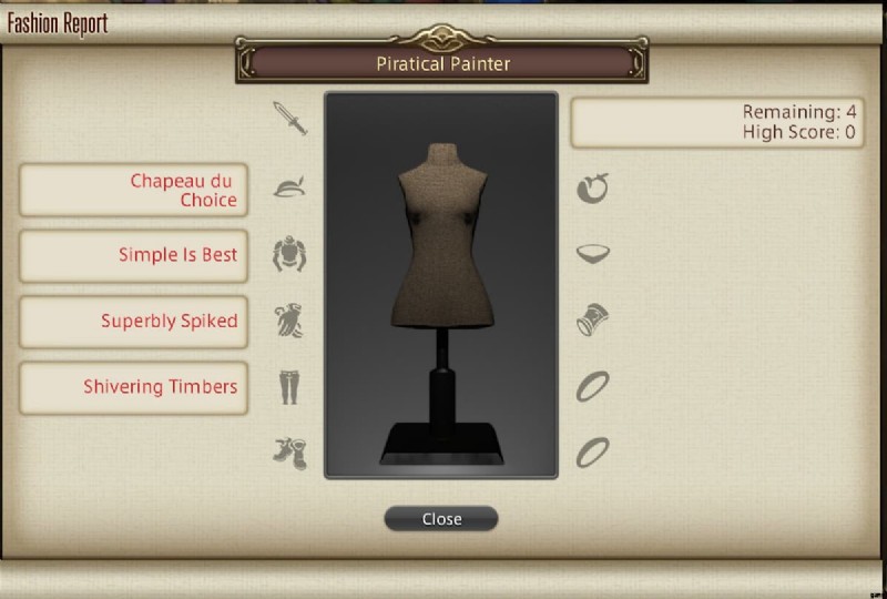 ファッションレポートは毎週火曜日に更新されるので、毎週次のウィークリーリセットまでに必ず完了させてください。ゴールドソーサー (X:7.2, Y:7.4) に参加するマスクド ローズを見つけることができます。 毎週 3 回、100 点満点中 80 点以上の衣装を作成できます。ただし、毎週異なるテーマがあります。ヒントとして得られるのは、各スロットでどのタイプのアイテムが最も効果的かについての漠然とした手がかりが記載されたシートだけです。