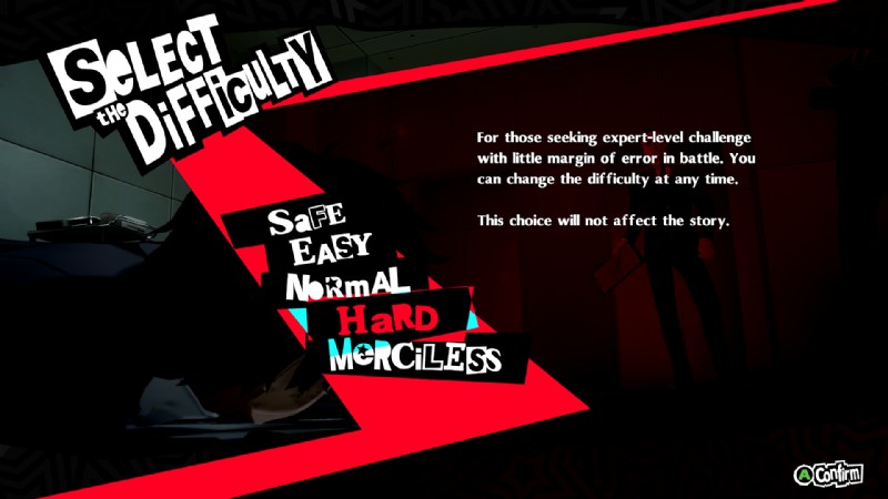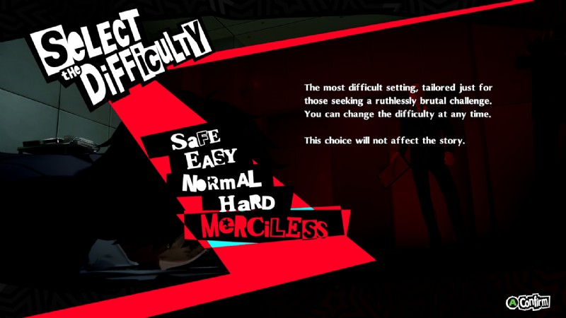 無慈悲な難しさは、ペルソナ 5 ロイヤルに見られる究極の課題です。それは、「容赦なく残忍な挑戦を求めている人のためだけに調整された、最も難しい設定です。難易度はいつでも変更できます。」前述の女神転生の wiki ページによると、ハードの難易度と同様に、プレイヤーは通常の敵から受けるダメージの 1.6 倍のダメージを受けますが、敵にわずか 65% のダメージを与えますが、通常の難易度設定よりも 20% 多い経験値を受け取ります。 .敵は、戦闘外でプレイヤーの意識がピークに達し、セキュリティ レベルが最高速度で上昇します。