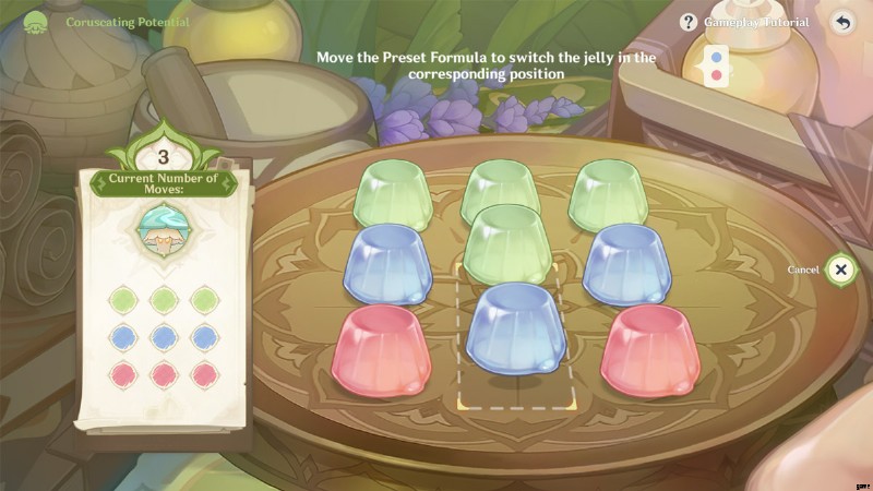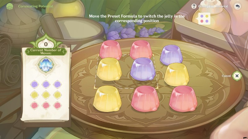 Genshin Impact の Fabulous Fungus Frenzy イベントで Fungi パートナーの可能性を最大限に引き出すには、小さなパズルをクリアするという試練を乗り越えなければなりません。あなたの目標は、テーブル内のすべてのゼリーが画面の左下隅の画像と一致するようにすることです。成功すると菌類は新しい戦闘スキルを獲得し、ミニゲームをできるだけ早く完了することで多くの報酬が得られます。