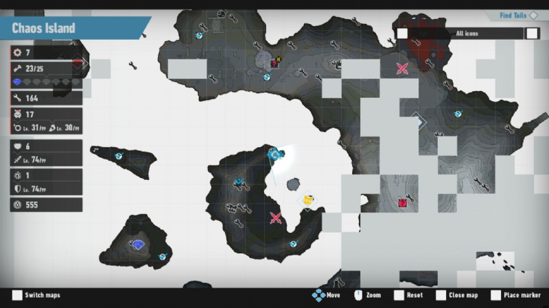 代わりに、テイルスがいる場所の完全な反対側に向かう必要があります.問題のカオス島の塊は三日月形なので、北側の「先端」まで走ってください。もちろん、たくさんのレールなどが表示されますが、それらはそのままにしておいてください。