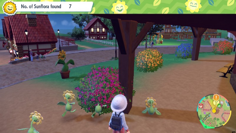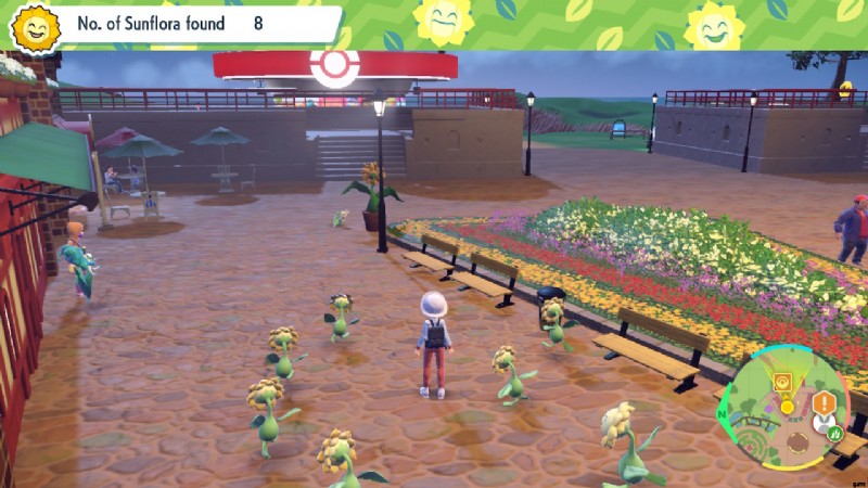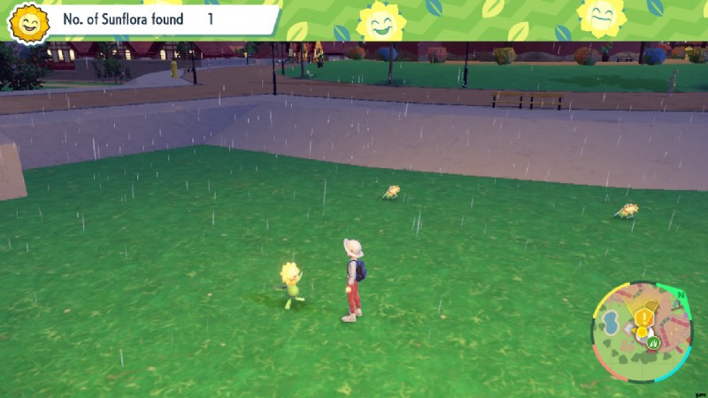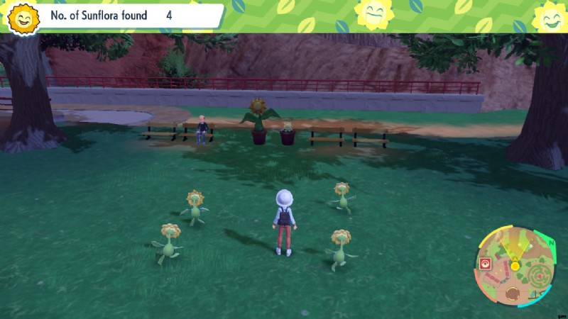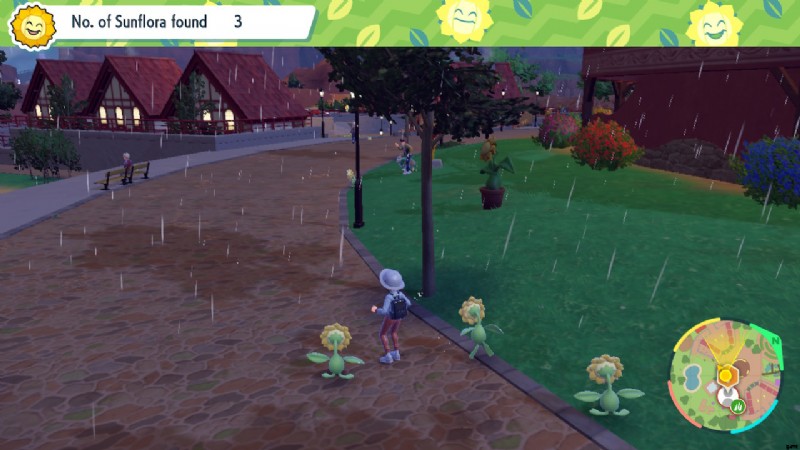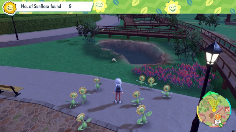 4 番目の Sunflora を拾った場所から北西に歩いて、町のはずれにある 2 つのベンチの近くにある Sunflora を見つけます。