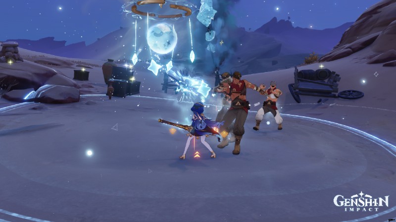 レイラのバーストは一目瞭然で、半径内の敵にクライオダメージを与えるという点でガニュウと同様に機能します。それだけでなく、レイラのシールドを展開している場合は、シールド用のスターも生成されます。したがって、レイラのスキルとバーストの両方がアクティブなときに他のキャラクターのスキルを使用すると、適用して多くのクライオ ダメージを与えることができます。