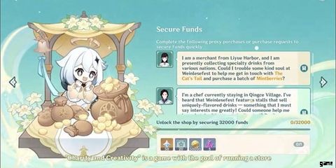 In Charity and Creativity, players are tasked with haggling to amass supplies and opening up their own Charity Stall at the Weinlesefest. During the first step, players will need to gather items to trade for the currency that can be used to open and run the Charity Stall. The goal is to make 32,000 as an initial investment to set up the stall, so players should gather and trade any items possible with the Angel's Share and Cat's Tail shopkeepers at the Weinlesefest venue.