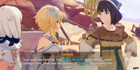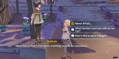 プレイヤーがアアルの村に到着すると、サバの頭にクエスト マークが表示されます。彼女に話しかけ、植木鉢にデンドロを使って次の報酬を獲得しましょう: