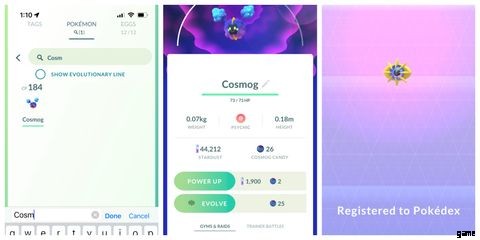 ポケモン GO でコスモッグをコスモウムに進化させる方法を学ぶには、次の手順に従ってください :