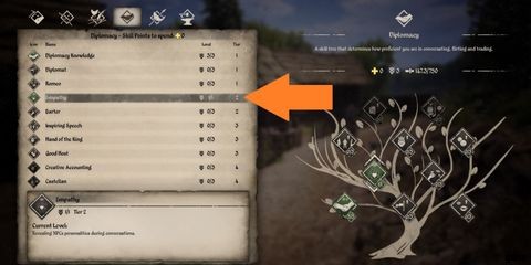 NPC の性格を決定する最も簡単な方法は、ゲームが単にそれが何であるかを述べるよりも簡単です。これを行うには、外交でレベル 10 に到達する必要があります (アイテムを販売すると、販売したアイテムのコストに基づいてこのスコアが増加します)。その後、共感スキルを選択します。