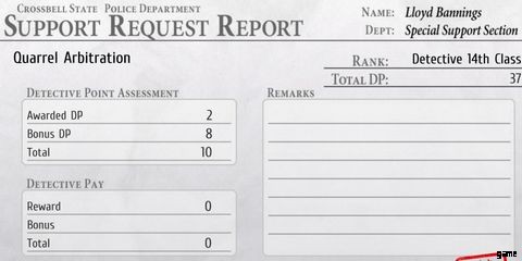 メインストーリーとオプションのリクエストを通じて、英雄伝説 ゼロからの軌跡が発生する状況があります。 プレイヤーは一連のオプションから選択する必要があります。決して悪い選択はありませんが、そのうちの 1 つだけがボーナスの探偵ポイントを提供します。リクエストを報告する際に、プレイヤーが上の図のようにボーナスの探偵ポイントを獲得したことがわかった場合、それはプレイヤーが正しく選択したことを意味します。