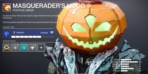 アクティビティを完了した後にページをドロップするには、プレイヤーは失われた祭りのマスクを着用していることを確認する必要があります .紹介クエスト中に、プレイヤーはキャラクターのマスター ラフールの不気味な張り子のマスクのように見えるヘルメットを受け取ります。プレイヤーが他のフェスティバル オブ ザ ロスト オーナメントをアンロックしている場合、マスター ラフールのデフォルトの外観の代わりにそれらを使用できます。 プレイヤーが使用しているマスクは問題ではありません。それは完全に外見上の選択です .