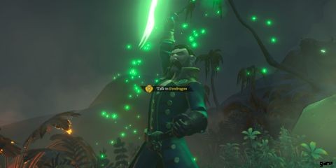 プレイヤーがそれぞれのビジョンを明らかにし、毎回ペンドラゴンに話しかけると、彼はプレイヤーにマップを渡します。 Ashen ReachesにあるStitcher's Hideoutとトーテムキーを探す . 南西の Ashen Reaches に到達するには、短い距離を航海する必要があります。 悪魔の渇きの。