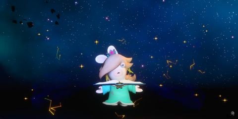 Rabbid Rosalina は、第 2 惑星の Pristine Peaks と呼ばれるエリアで見つけることができます。キャプテン オリオンがウィンター パレスで行方不明者を見つけるのを手伝っている間、プレイヤーはミッドナイトと呼ばれるスパーク ハンターのボスに遭遇します。この時点で、Rabbid Rosalina は戦闘中に 4 番目のパーティ メンバーとしてチームに参加し、最終的に完全にロック解除されます。