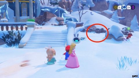 最初のイグルー ブレイクスルー サイド クエストのアイス ブロック Rabbid とそのイグルーのすぐ後ろにある円形の雪のエリアで見つけることができます。イグルー前の坂道を下り、冬宮へ続く左の階段へ。階段ではなく、左側の道を進みます。