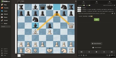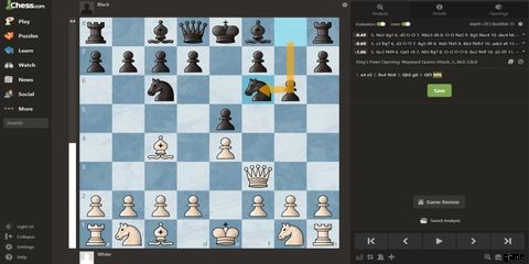 この動きはチェックメイトをブロックし、ピースを展開します。ゲームはまだ終わっていませんが、この位置では、黒は白よりも優れたピースを開発しながら、学者の仲間からの防御に成功しています.