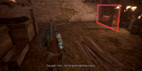 最初の秘密のチェストは、第 3 章「A Burden of Blood」の最後にあります。アミシアとルーカスが逃げ出した後、敵の倉庫に忍び込み、ナイトシェードを探します.秘密のチェストは、部屋の右隅の最下階、Amicia の紛失したアイテムの向かいにあります。