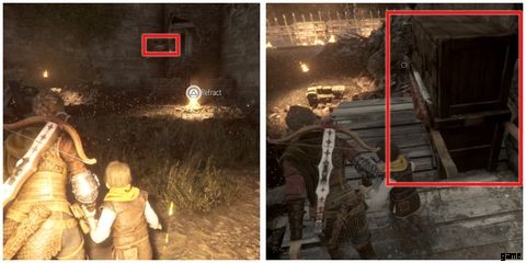ネズミが警備員を攻撃して殺すと、アミシアは移動可能な馬車に火をつけることができます.その向かいには、はしごでアクセスできる小さなプラットフォームにある 2 つ目の秘密のチェストがあります。