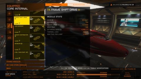 - 範囲が拡大された 7A フレーム シフト ドライブとマス マネージャー。 ここで驚きはありません。これは、50 メートルのジャンプ レンジという輝かしいジャンプ レンジを船が絞り出すために必要なものです。