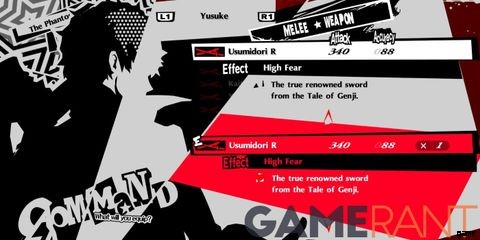 近接武器の場合、フォックスはさまざまな刀を使用します。彼の仲間の怪盗団のように、これらの武器のいくつかは、装備中に状態異常を引き起こしたり、彼のステータスの1つを増加させたりするなどの特別な効果を持っています.フォックスの最初の武器は通常の刀で、攻撃力は 78、精度は 94 です。他の「最初の武器」と同様に、刀はあまり強くなく、ボーナスもありません。つまり、P5R エム> プレイヤーはできるだけ早く交換したいと思うでしょう。宮殿がクリアされるたびに、渋谷のアンタッチャブル ストアに新しい商品が届きます。プレイヤーは、Persona 5 Royal を進めるにつれて、より強力な武器を購入するために店を訪れる習慣を身に付ける必要があります。 .