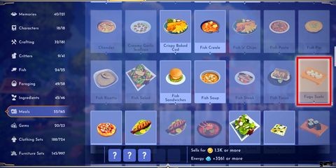 ディズニー ドリームライト バレーのほとんどの 3 つ星レシピとは異なります 400から2,000のエネルギーを与えるフグ寿司はなんと3,261のエネルギーを与えます.必要な材料は次のとおりです: