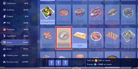 蒸しふぐは、前述のレシピに似ています。エネルギーを 3,668 回復する 3 つ星の料理で、その希少性を考えるとかなりのエネルギー量です。 ディズニー ドリームライト バレーに必要な材料