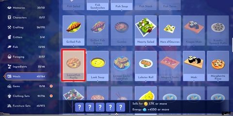 ランセットフィッシュのパエリアは、ディズニー ドリームライト バレーの 5 つ星料理です。 救世主のエネルギーを 4,550 回復します。次のような多くの要素が必要です: