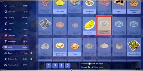 スモークピーナッツとアンコウは、たくさんの材料を集めたくない人に最適なレシピです. ディズニー ドリームライト バレーの 2 つ星料理だと考えると 、なんと 3,960 エネルギーを提供します。成分は以下のとおりです: