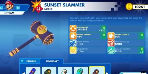 ブラスターを補完するために、マリオはより特徴的なハンマーも近接オプションとして選択します。これらは通常、効果範囲のダメージを大量に与えます。ただし、これにはクールダウン、射程の制限、およびカバー ダメージの不足という代償が伴います。