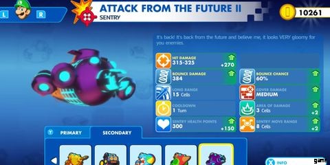 Acting as something of an extra, automated fighter on the battlefield, Luigi's Sentries are quite handy as a secondary weapon. Not only do they add extra firepower, but they can also hunt down and explode on targets when clashing with them.