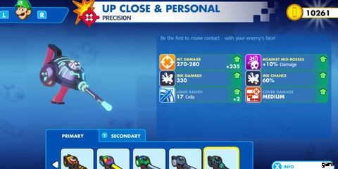 - This sleek, sci-fi-themed rifle is a damage machine, cranking out 270-280 Hit damage, 330 Ink damage (60% chance), and gives a welcomed boost during mid-bosses, dealing an extra 10% damage against those beasts. Players can also take advantage of its extended range of 17 cells and medium Cover damage, picking off foes all over the map with ease.