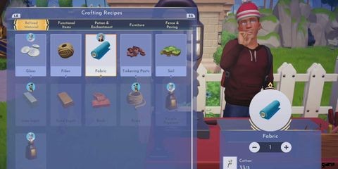 綿の種は 42 スター コインが必要で、成長するのに 25 分かかります。この時間の要件に加えて、プレイヤーはこれらの作物が確実に成熟するように 3 回水をまく必要があります。プレーヤーは、ディズニー ドリームライト バレーの 1 つを招待することで、収穫量を増やすことができます のキャラクターは、ファーミングにボーナスがあります。 5 つのコットンを近くのクラフト ステーションに持っていくと、精製された素材セクションの下にファブリックが見つかります。