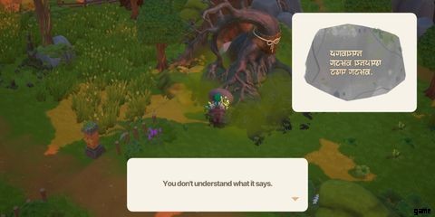 木の前にある光る岩を操作すると、カットシーンが再生されます。