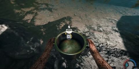 汚染された水が集められたら、プレイヤーはその容器を基本火の上に置いて沸騰させる必要があります。 またはファイヤーピット .約 30 秒後に水は浄化され、摂取しても悪影響はなくなります。汚染された水を沸騰させることは水分補給に最適な方法ですが、もっと簡単な方法があります。