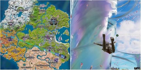 マップ上にスポーンする 2 つの Chrome Vortex があります。 1 つは常に Herald's Sanctum に現れ、もう 1 つは絶えず動き回っています。常に動き回っている渦は通常、ロッキー リールとシマリング シュラインの間、またはシャイニー サウンドとラストラス ラグーンの間で発生します。 .プレイヤーは、バトル バスに乗ったらマップを開いて、この竜巻が発生した場所を確認できます。これは、Herald's Sanctum のものとまったく同じように見える白い渦巻きのシンボルです。